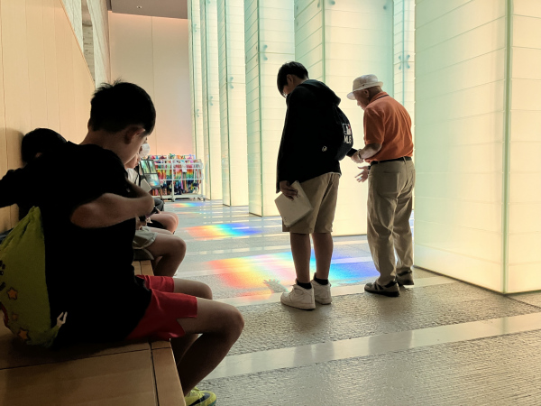 また、「追悼空間」では、地上にある大きな「水盤」を通り抜けた太陽の光が、地下の静謐な「追悼空間」の床に届くことで現れる美しい虹(光のプリズム)を見ることができます。