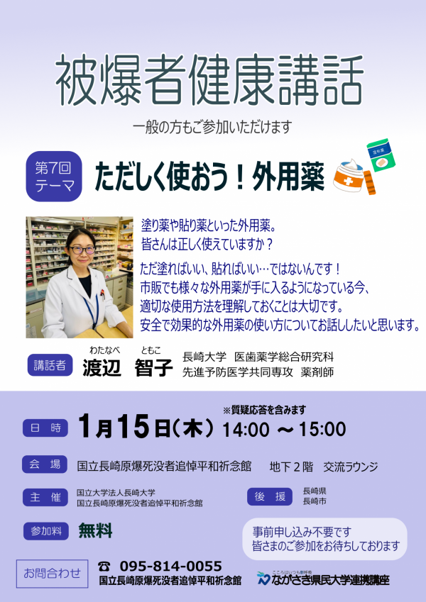 【イベント】1/15「第7回被爆者健康講話」開催のお知らせ