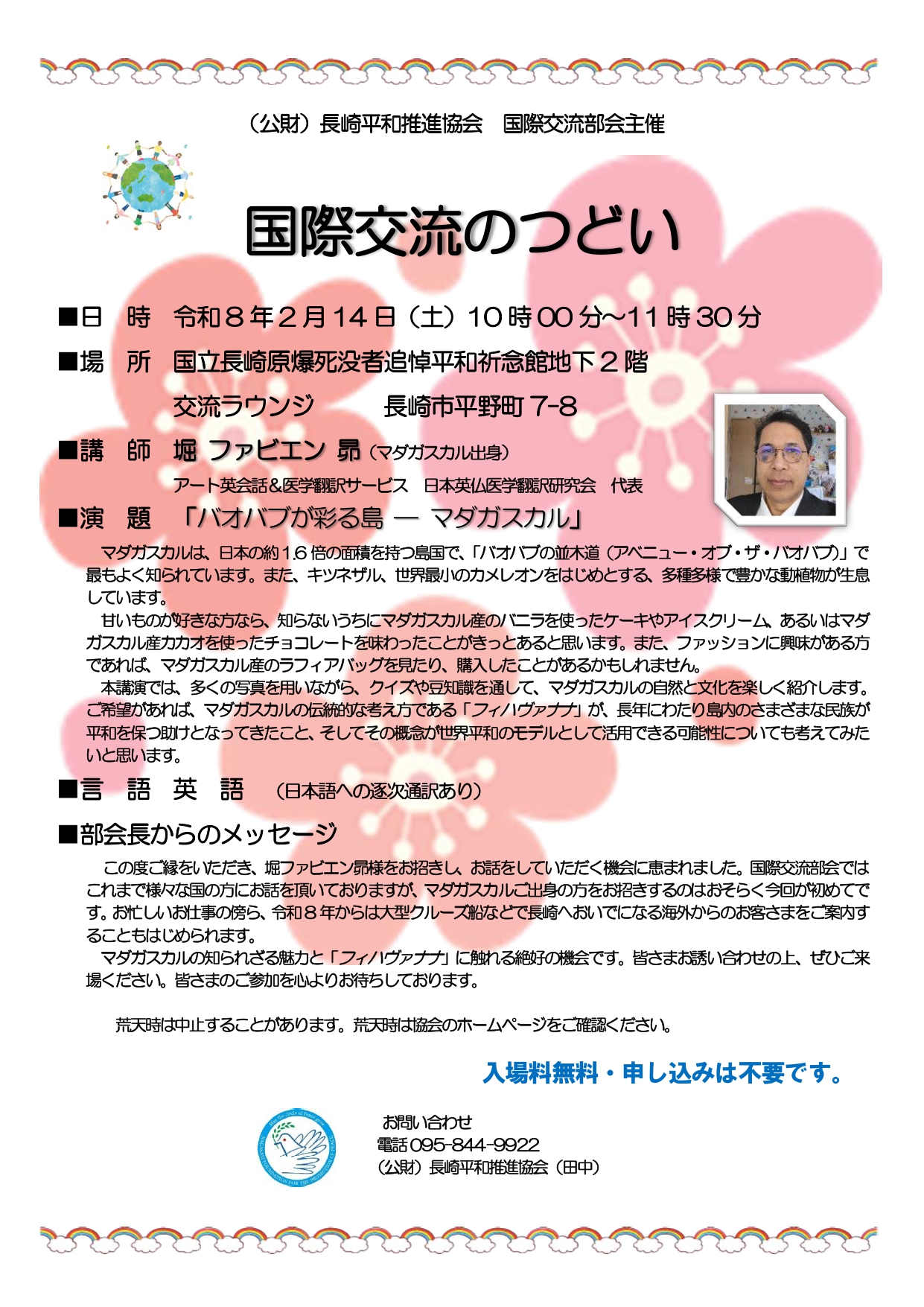 2月のつどいは、マダガスカル出身の堀 ファビエン 昴氏に講演していただきます。
