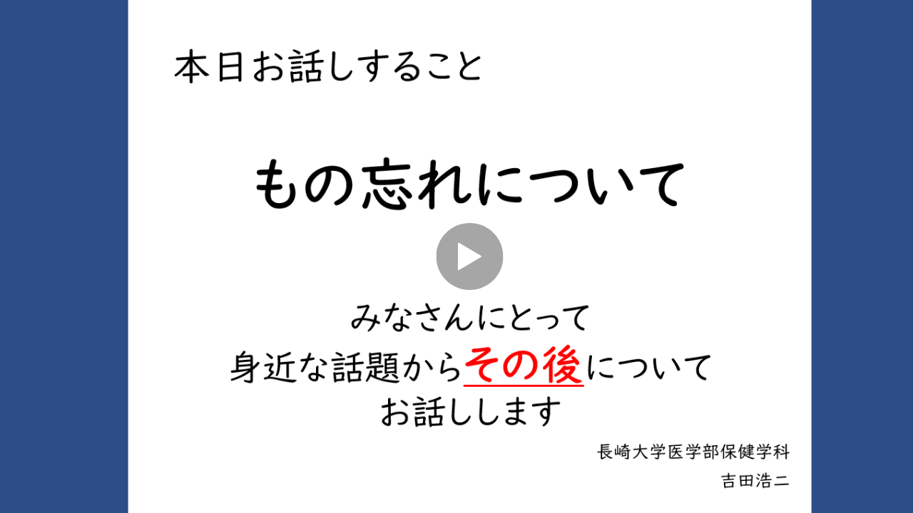 - ⑯【YouTube】「認知症予防に運動は効果的!?その効果と運動方法」(折田真紀子)