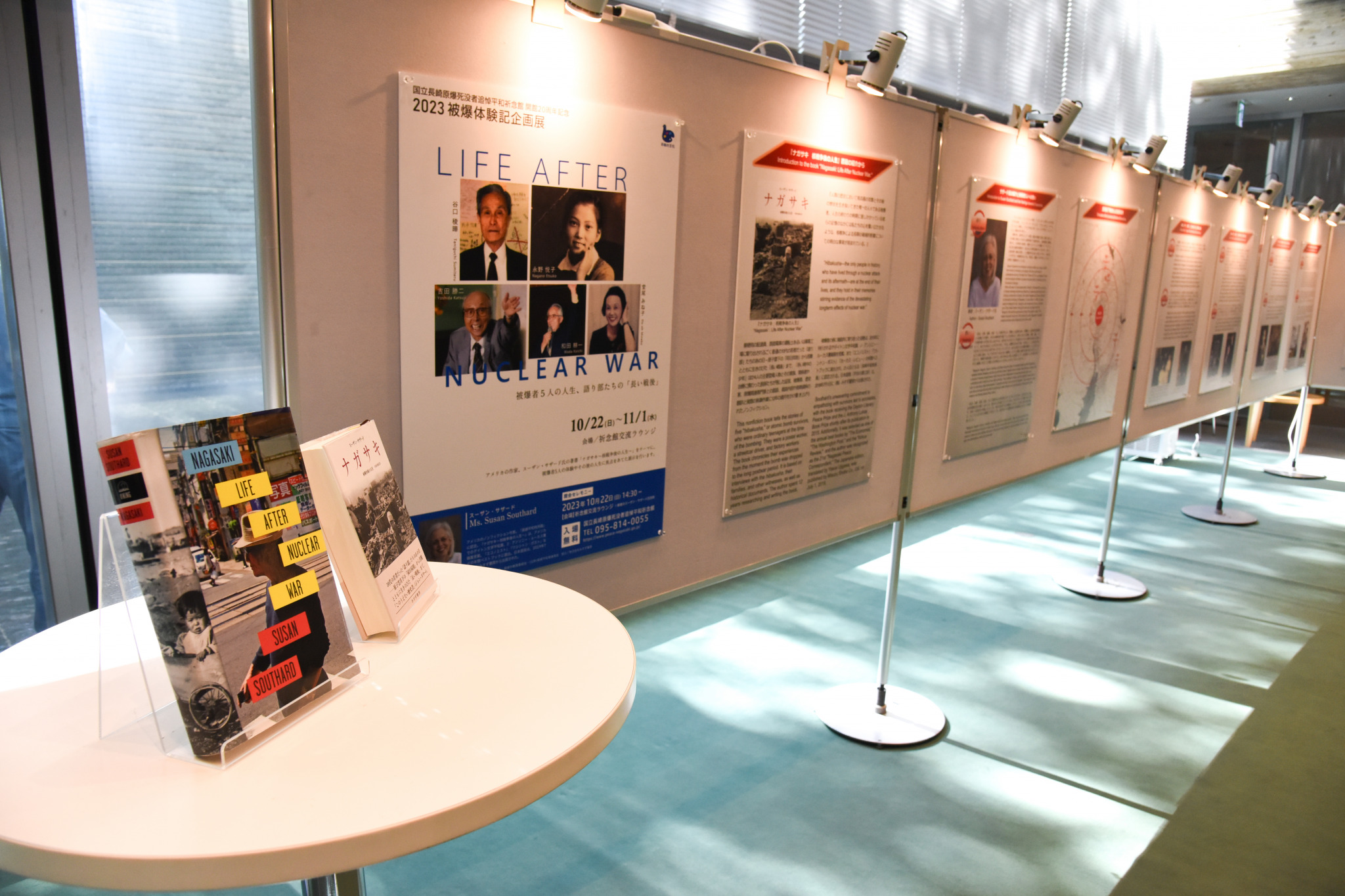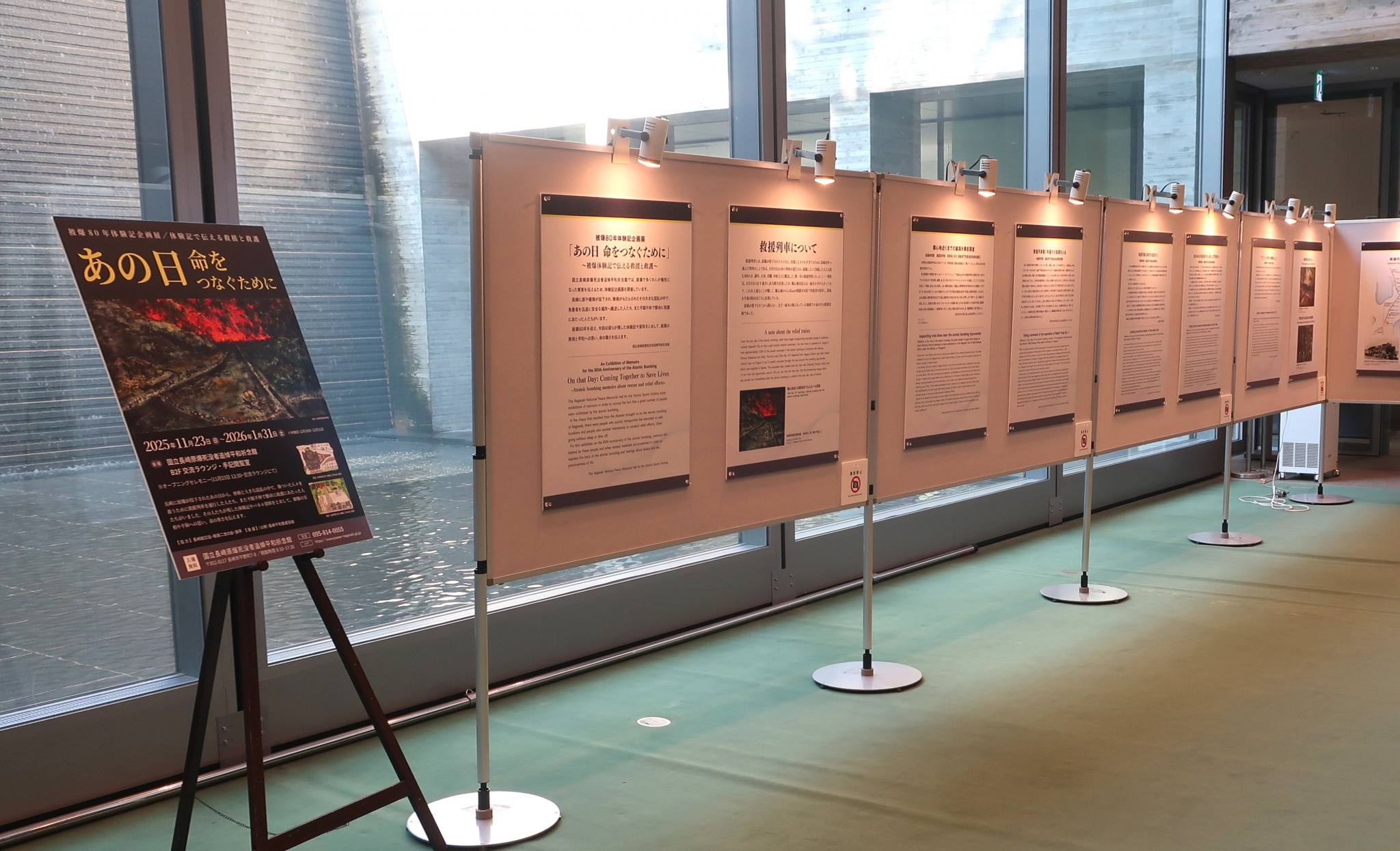현재 2025년에 개최한 피폭 80주년 체험기 기획전 <그날 생명을 이어가기 위해>의 전시에 사용된 패널을 지하 1층 수기전시코너에서 전시하고 있습니다.